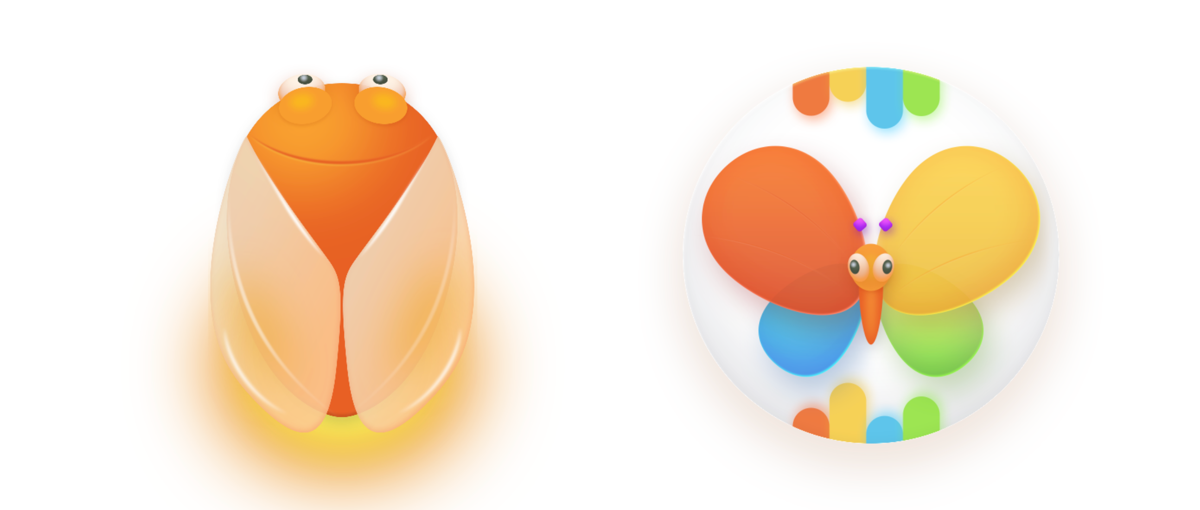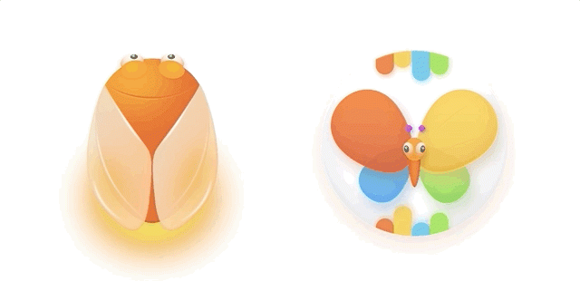 以之前我所做的一套图标系统为例,设计原则上以小动物昆虫为原型,概括其主要特点,再加上孩子的交互互动触发动画,让图标具有生命力和想象力,更有趣味性。