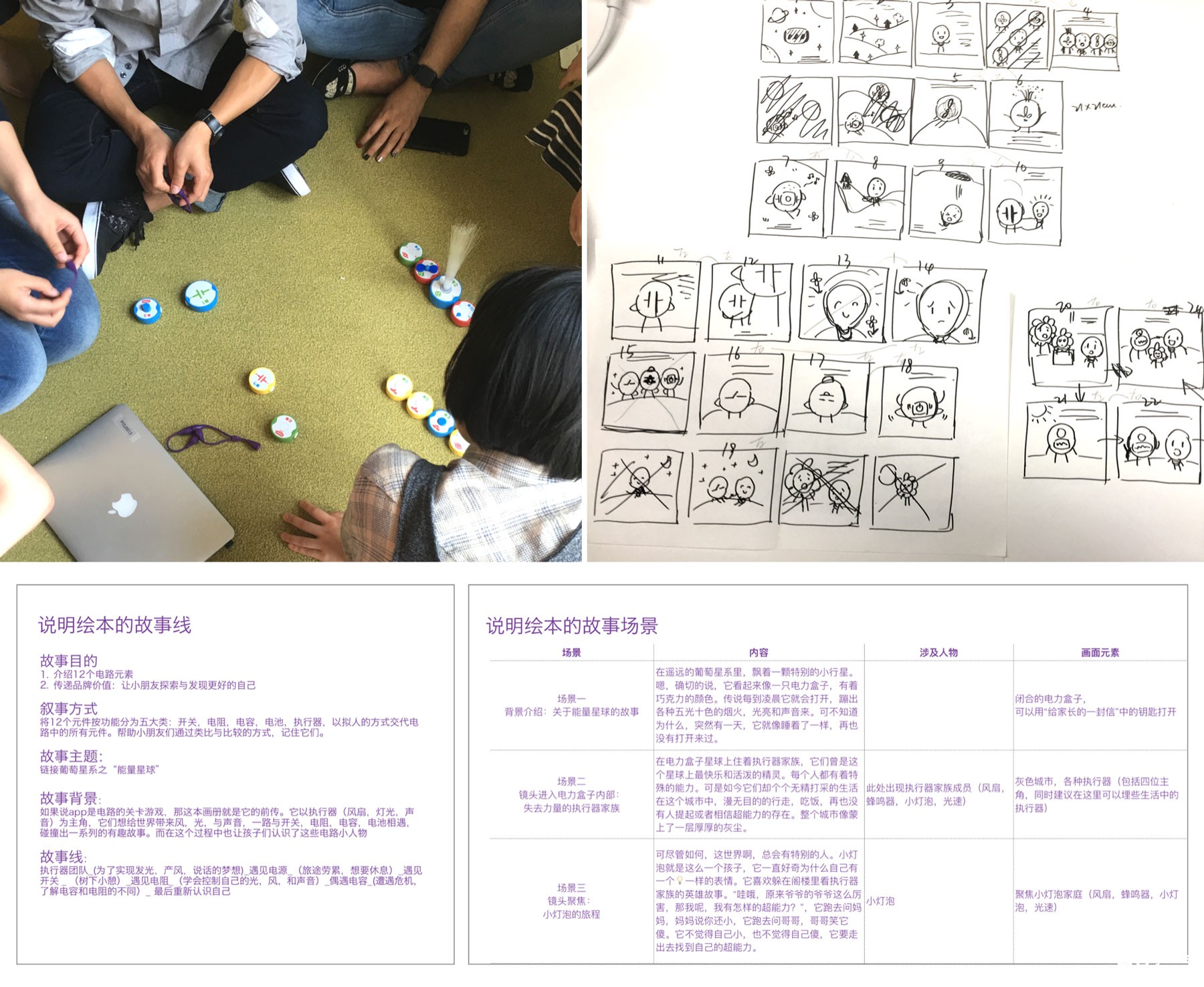 接下来就是开始定义绘本故事,设计团队去借鉴了许多绘本的故事及形式,**定义了以小灯泡为主角探险寻找光的故事。