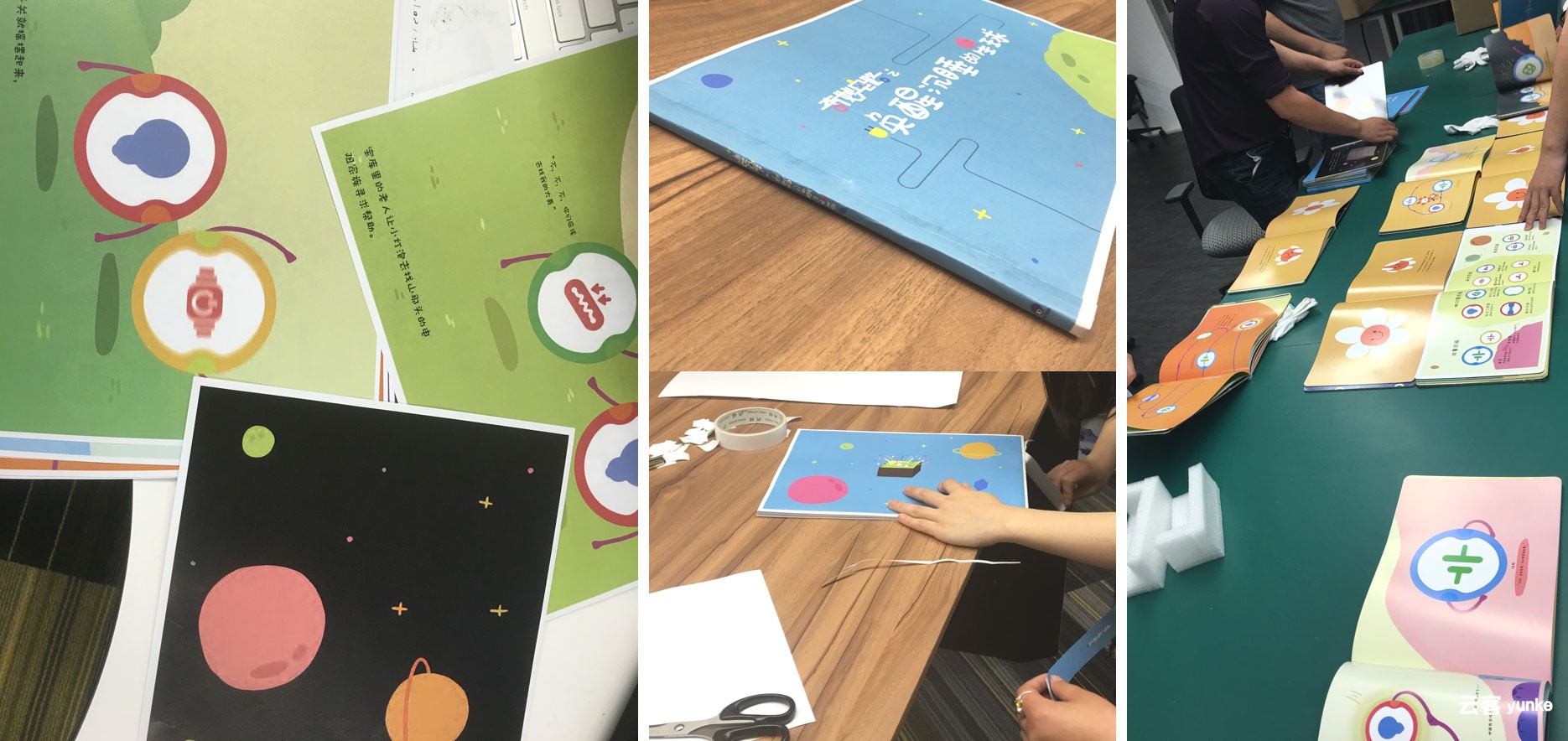 手工制作绘本,测试后矫正后,进行工厂打样。孩子们拿到手上的就不再是枯燥的说明书,而是一个有趣的电路绘本故事。