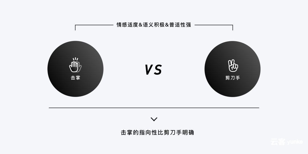 考虑到“击掌”比“剪刀手”具有更为明显的指向性,所以确定“击掌”为最终的落地方案。