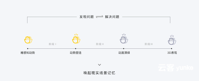 击掌的视觉设计是一个发现问题到解决问题不断循环的过程。在这个过程中,推动解决方案逐步升级的核心方法是情感化设计。