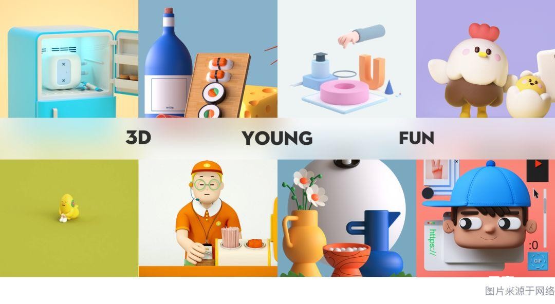为此,我们以“3D”、“young”、“fun”作为关键词收集参考素材,以此建立情绪版。