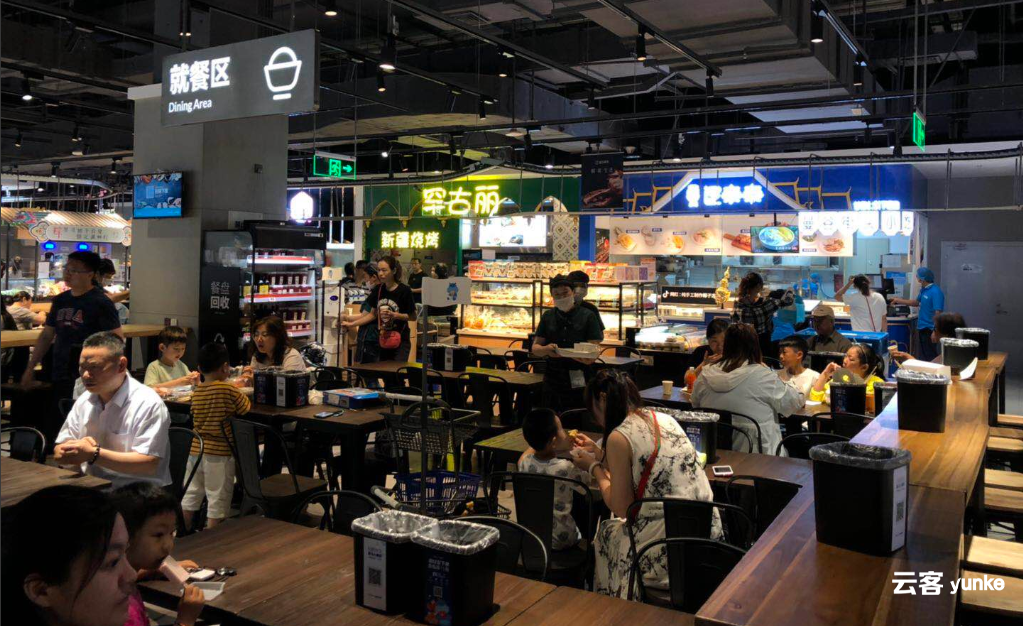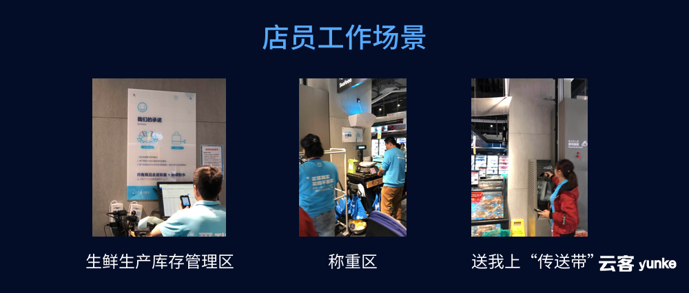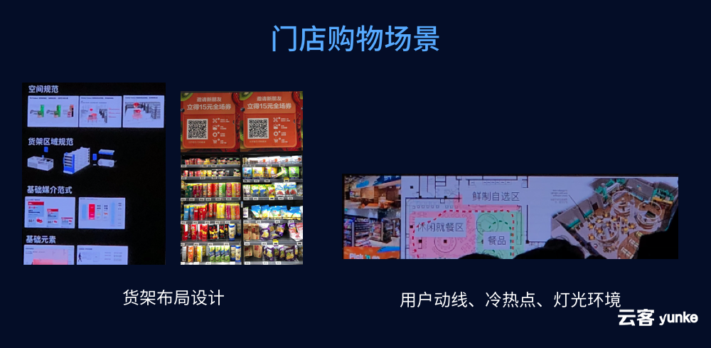 我们说,盒马用户体验设计的边界从“界面”延伸到“门店”,这里的门店其实是各种服务场景的载体,主要场景包括:门店购物场景、餐饮场景、收银场景、门店工作场景。