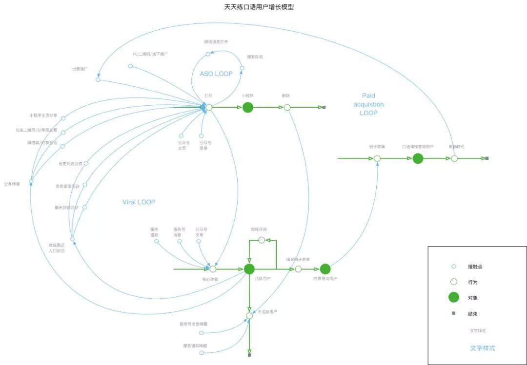 这是我们沪江在小程序刚来临之初天天练口语的增长模型。