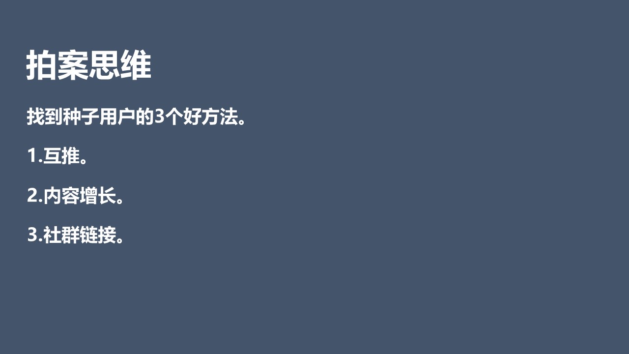 这里大家比较好用的3个方法,1是互推,2内容增长,3是社群的链接,4.线下链接。