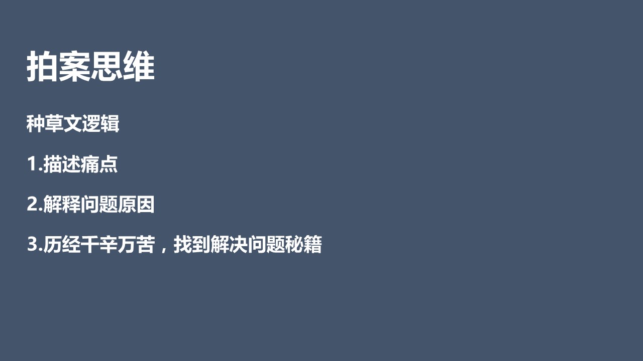 - 解释问题原因:用自己真实经历代入,工作原因经常熬夜,导致黑头,为了解决问题,去跟很多人请教问题怎么解决,产生问题的原因是什么。