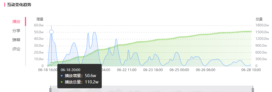 更值得一提的是短短10天UP主就涨粉17.5w,并且在发布当天一小时内**能增长50.6w播放量,可以说UP主这一次行而有效地吃到了流量红利,在高峰入局,收获高质量的数字资产。