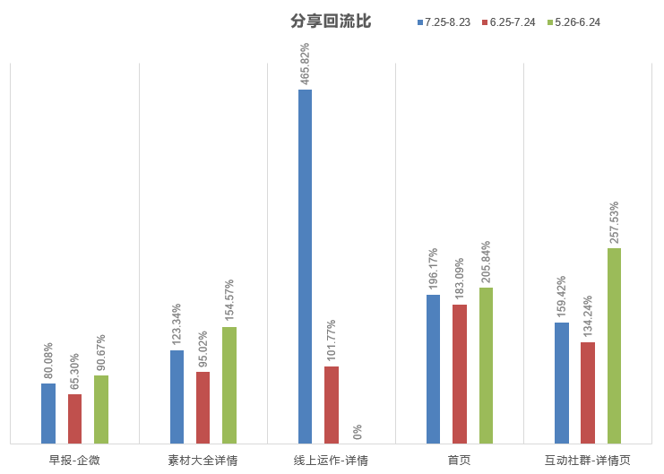 高分享回流比,考虑与新颖的早报排版和标题有关,推测新版早报的版式设计和内容有较强的吸引力。
