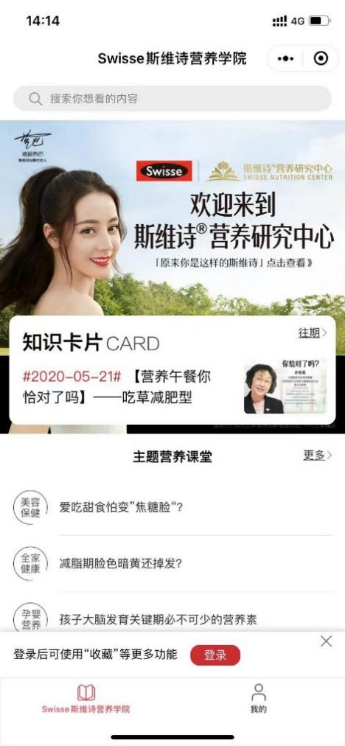 相对而言,斯维诗-营养学院的每日分享系列,功能定位更贴近每日早报功能,干货知识以卡片的形式,承载了每日分享内容,同时包含每日饮食,每日营养,每日护肤,每日运动等内容。由此启发我,构思每日早报的内容,可通过丰富新闻内容,或者分享内容,来提升用户的停留时间。
