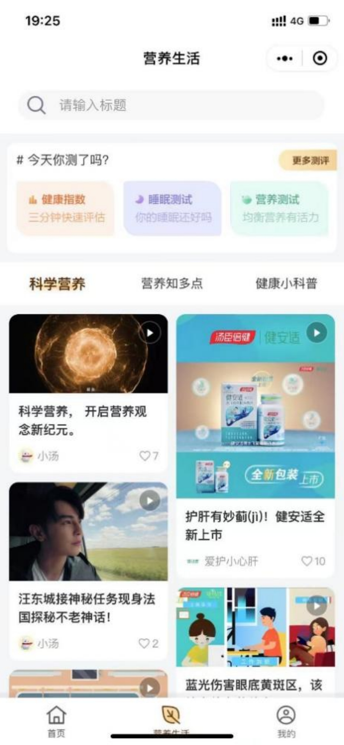 对标汤臣倍健的营养手册,将营养类的干货内容,以手册的形式作为一个点的模块,嵌入到营养生活的小程序中,与健康指数、睡眠测试、营养测试等测试工具整合到一起。与我们定位不同的是,营养手册里的内容属于弱分享类内容,作为科普类内容,主要起到查询和阅读的作用。