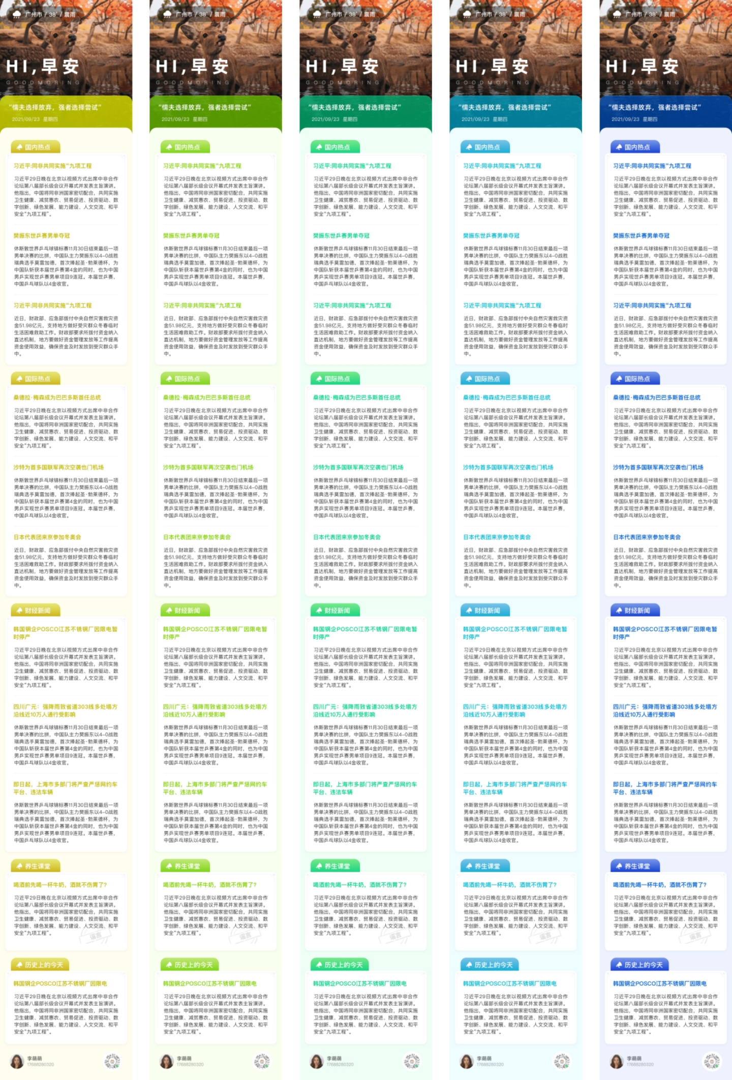 旧版每日早报的海报样式统一,该功能的内容模块固定且不支持修改,为了增强功能的延展性和适配性,我们在后台新增早报功能的颜色配置组件,运营人员可通过内容需求,或所处节气等,修改海报的颜色。