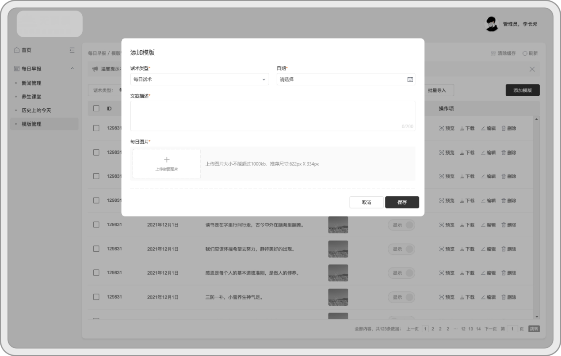 3)支持新建海报模板,增强每日分享内容的扩展性