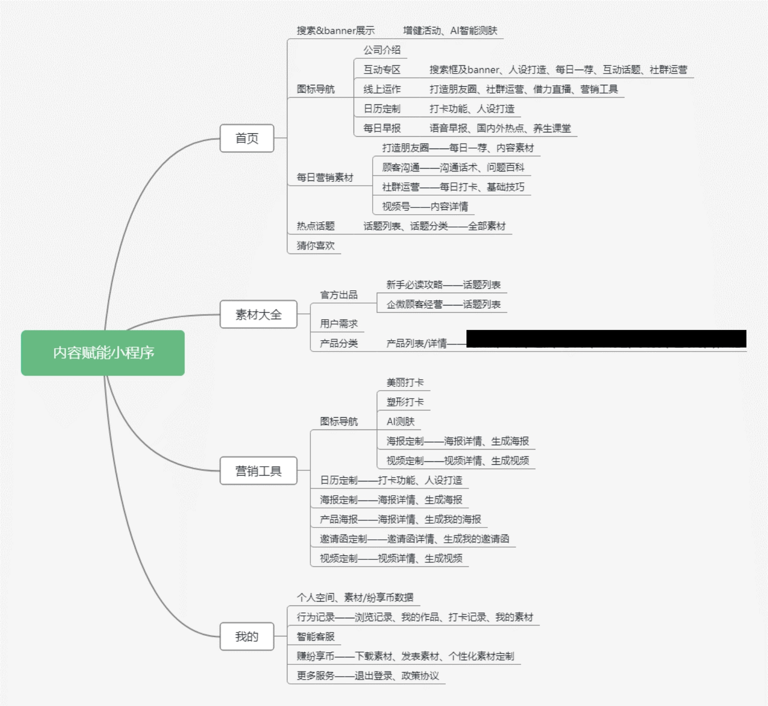 了解一个产品的最快捷方式,便是体验模块功能,同时通过近3个月数据寻找薄弱点,初步体验这款内容赋能小程序后,梳理产品的仪表盘如下: