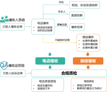 成因一:催收过程的潜在风险主要包括道德风险、合规风险、坏账风险。催收人员的主观不确定性较大,于是引发 的侵权、投诉,不胜枚举。规范员工行为、职场礼仪培训、严格的催收准则,并不能满足不断强化细化的催收监管规定。