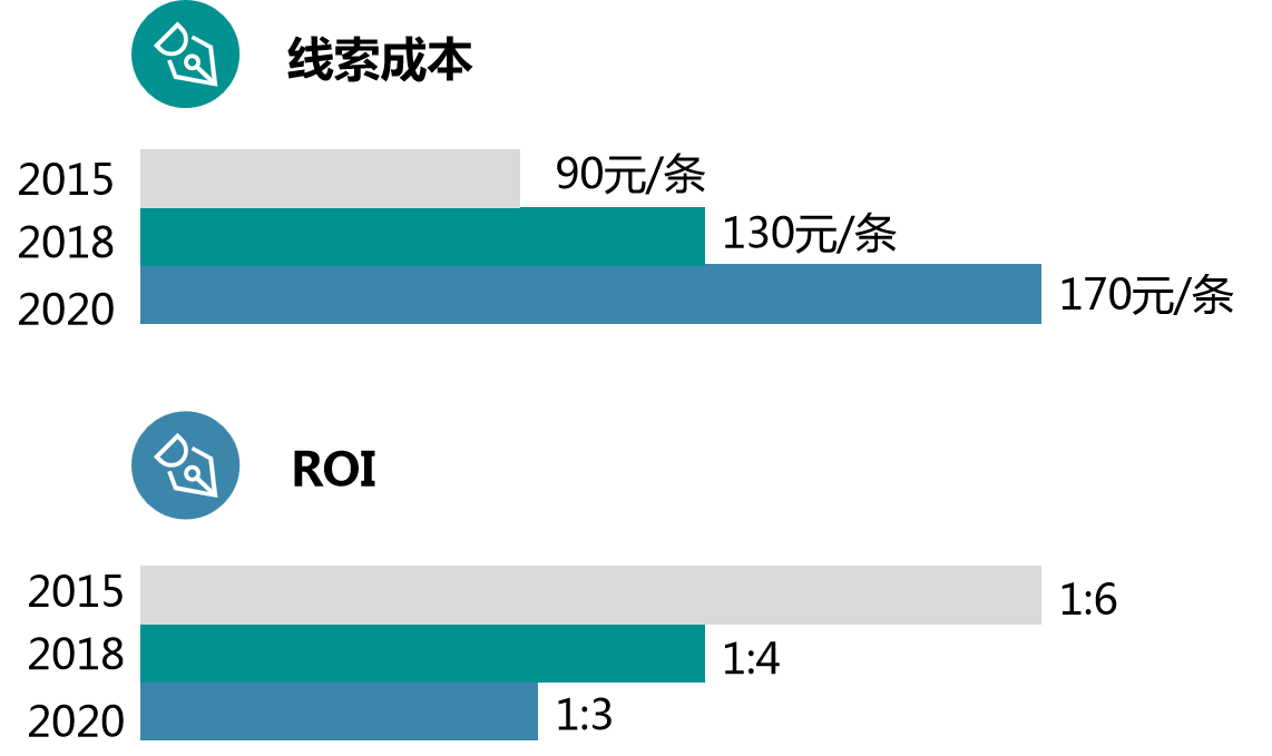 “云平台”老板是典型的技术大牛出身,带领研发团队三年磨一剑,为中小公司量身定制了一款,提高财税报账效率的SAAS平台。广告投放从2015年每条线索90元,到2020年的170元,成本将近翻倍。ROI也从1:6,逐步变成了1:3.电销团队的组建也是困难重重,7人的团队,每天输出意向商机只有20条,对于几十人的销售团队,商机量杯水车薪。
